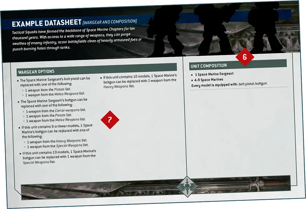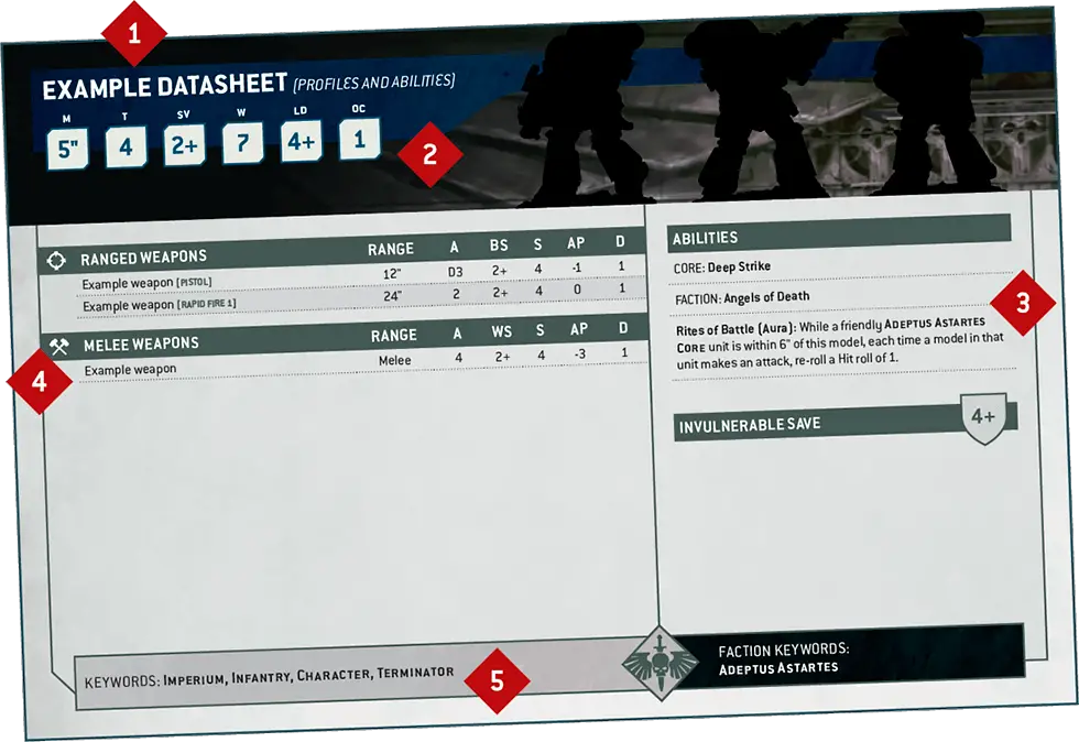 DATASHEETS AND UNIT ABILITIESEvery Warhammer 40,000 unit has a datasheet, reflecting the characteristics and abilities they can draw upon in battle.